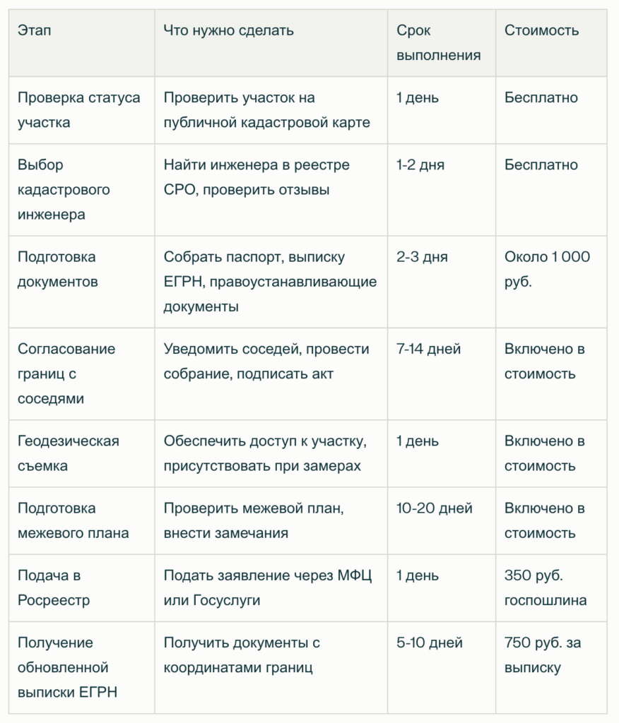 Процедура межевания включает несколько основных этапов, каждый из которых имеет свои особенности и требования:
